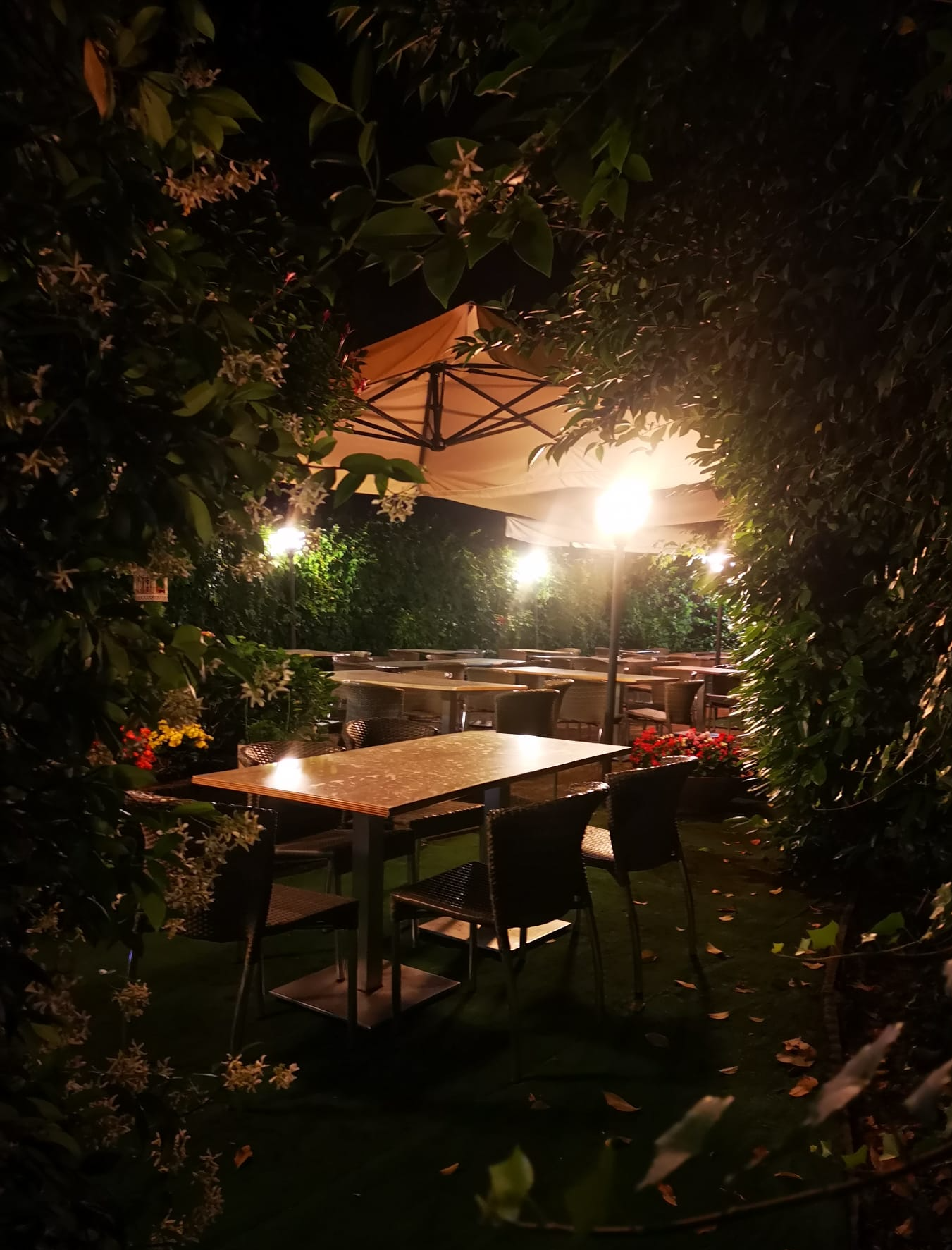 La nostra spaziosa sala interna può accogliere fino a 120 persone per cene private, aziendali o con amici, mentre il nostro giardino estivo, con una capacità di 140 posti a sedere, è perfetto per piacevoli serate all'aperto.