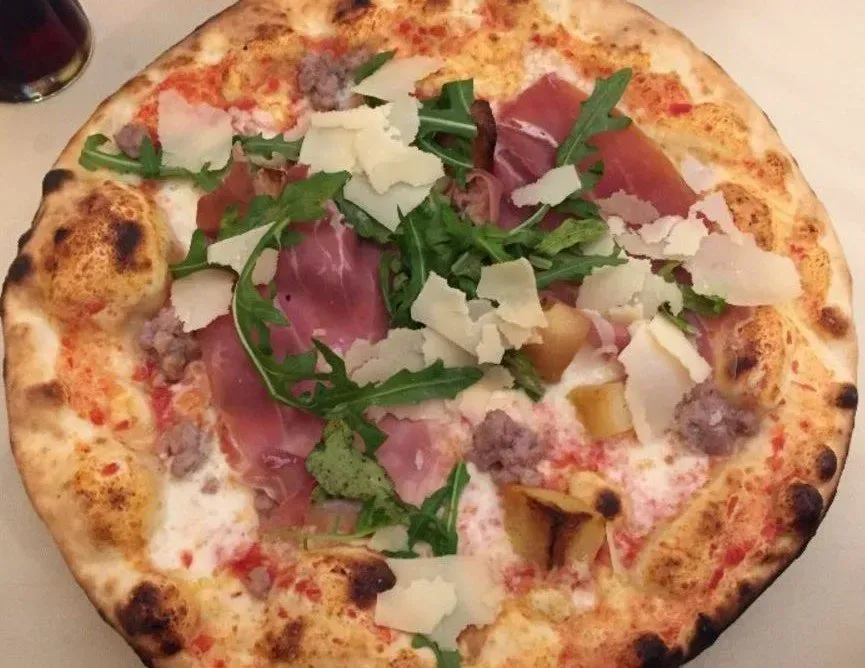 - Rosa dei venti (pomodoro, mozzarella, patate, salsiccia, crudo, rucola, grana)