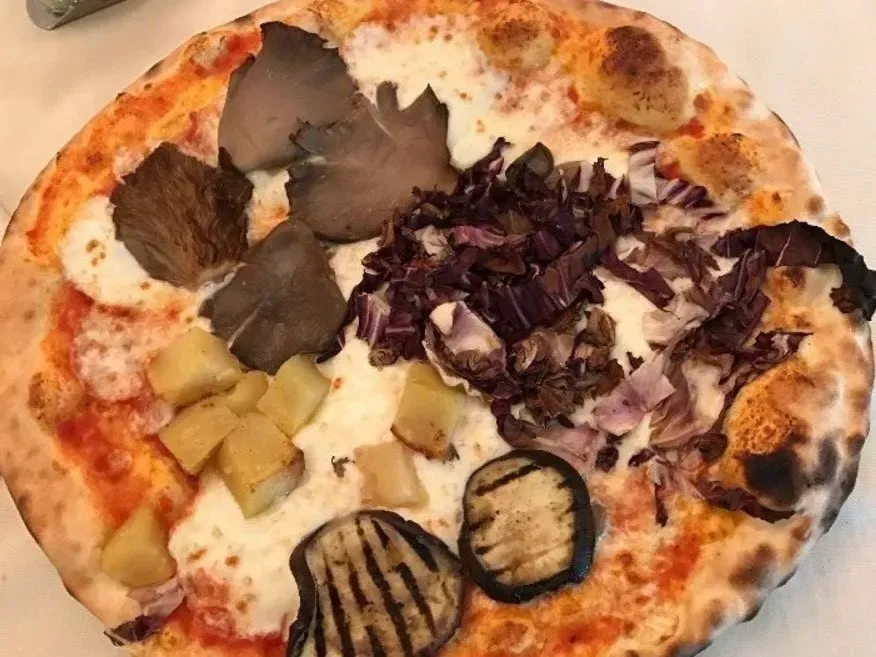 - Romana truccata (pomodoro, bufala, acciughe, capperi, olive taggiache, pomodori secchi, origano)